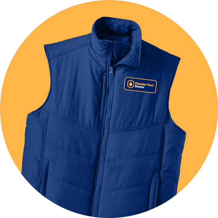 - You will receive your choice of a premium puffer vest or a $40 eGift card if you present to donate platelets a total of two times during the campaign period. Following that, you will receive: