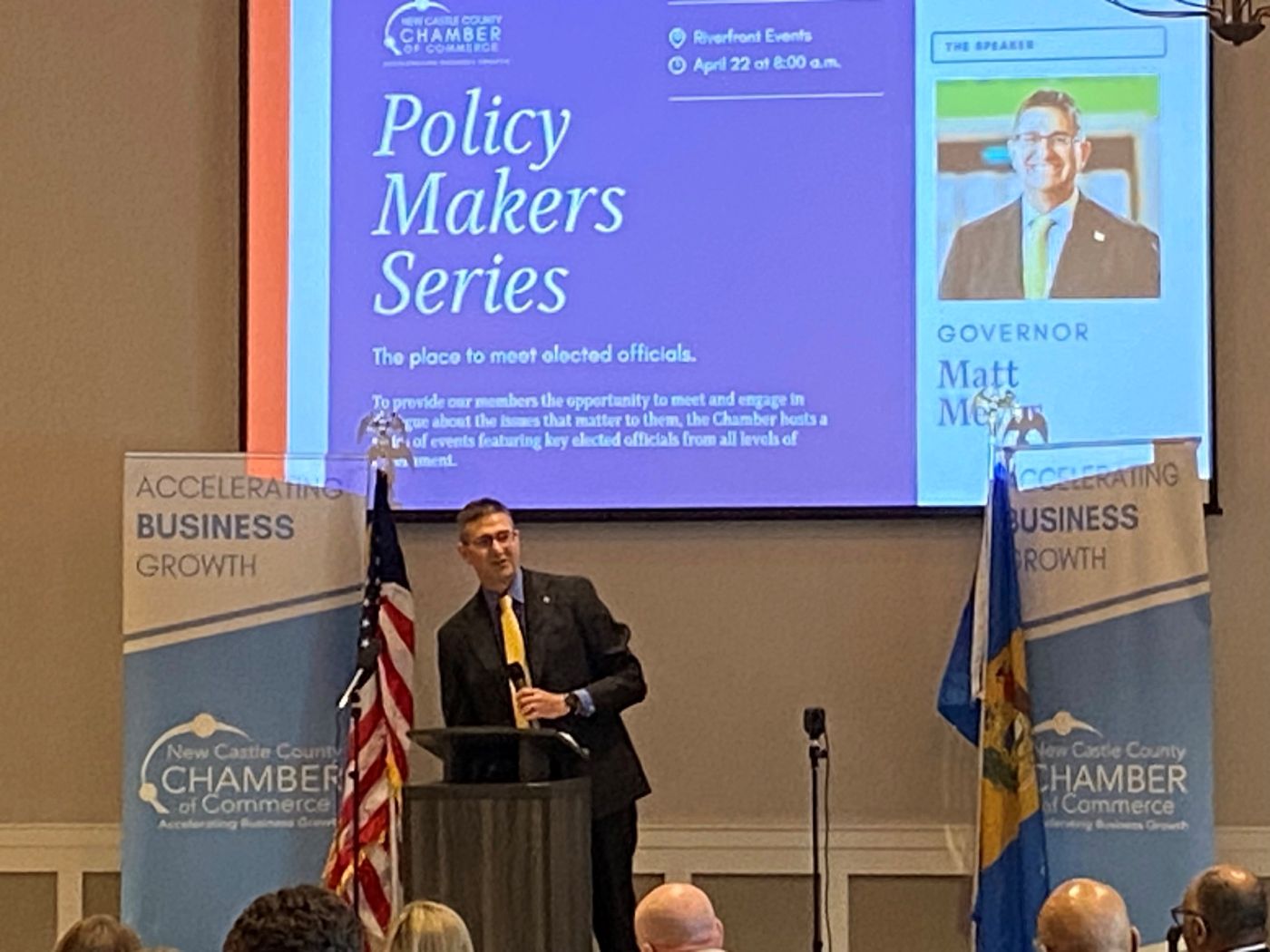 During the New Castle County Chamber event, Governor Meyer delivered the keynote address, highlighting the importance of public-private collaboration and praising the chamber’s work on behalf of small businesses. In a Q&A session, BBD publicly thanked Governor Meyer for his ongoing support, including the First Lady’s participation in a January blood drive at Legislative Hall, and requested continued help in raising public awareness about the need for blood donors.