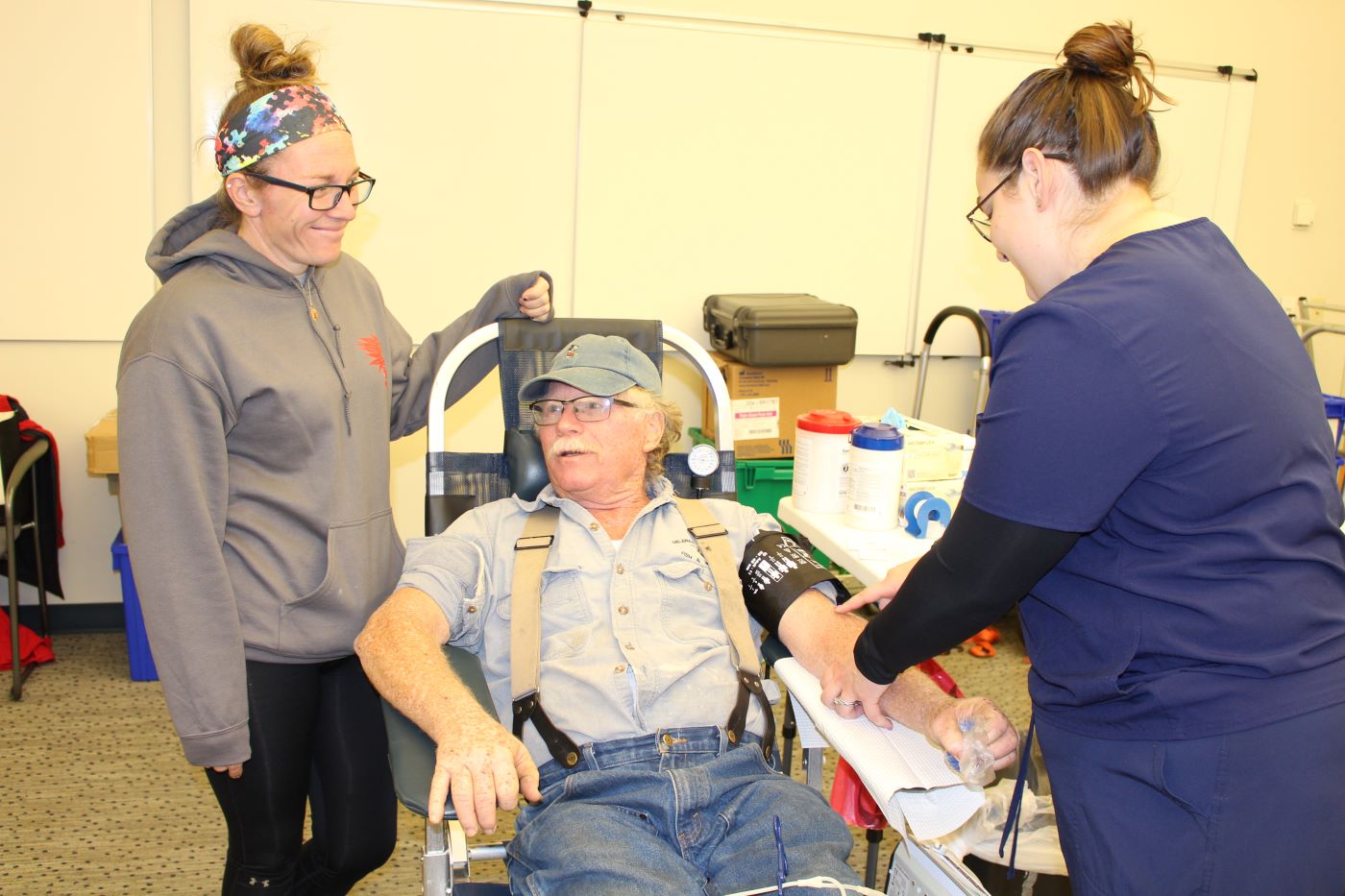Kenty County Paramedic Jessica Mills did not donate, but she brought Timmy Evans, a volunteer with Townsend Fire Company to donate in her stead.