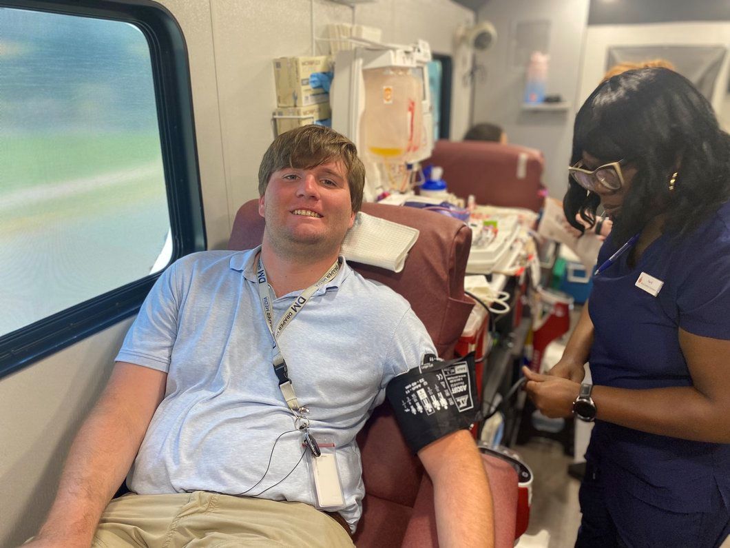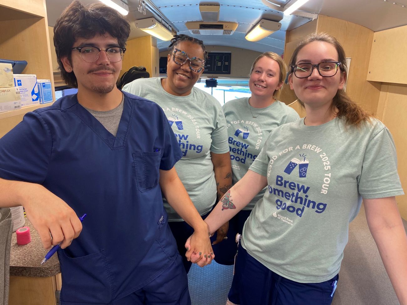 Dogfish Head booked all 50 appointments for this crucial blood drive, ultimately collecting 49 lifesaving donations. The first hour of the drive alone featured three first-time donors—recent Woodbridge High School graduates April Delmar and Qayonah Muhammad, and WRDE CoastTV reporter Tyler Rydson—along with repeat donor Zach Williams, who has embraced the Blood for a Brew concept.