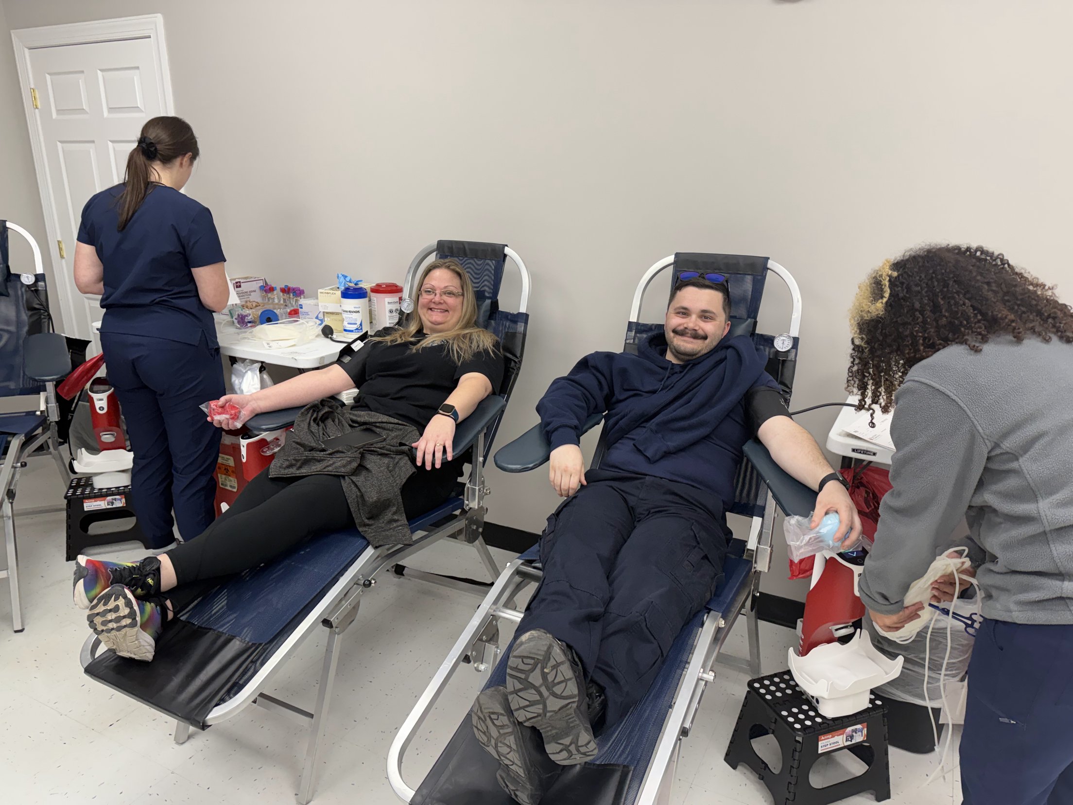 Also among the 62 appointments at the March 20 blood drive were Cecil County Department of Emergency Services Chief Patrick Campbell and Captain Nicole Hoffman, who was interviewed by WMAR 2ABC News.