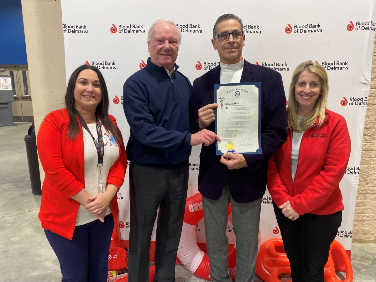 Ocean City Mayor Rick Meehan presented a proclamation to Blood Bank of Delmarva at the beginning of the 26th annual Ocean City Blood Drive on Monday, January 27. It was a fitting tribute to start the largest blood drive of the year, which occurs as the pinnacle of National Blood Donor Month.