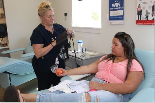 Blood Collection Techs Kate Keller and Mayra Colunga-Lopez always take care of our donors in the Dagsboro Donor Center.