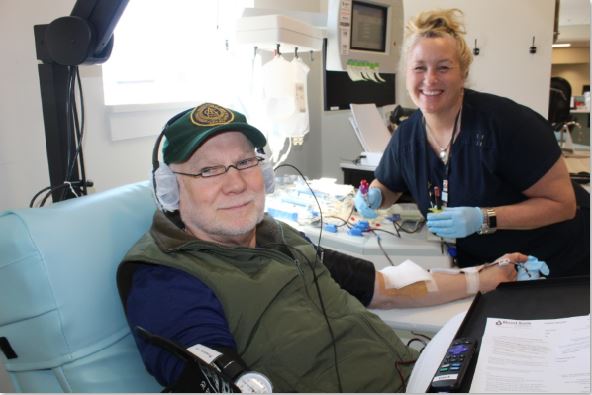 Over in the apheresis section, platelet donor Hollis Provis reconnected with Blood Collection Tech IV Kate Keller. Hollis has a special place at BBD as far as Kate is concerned.