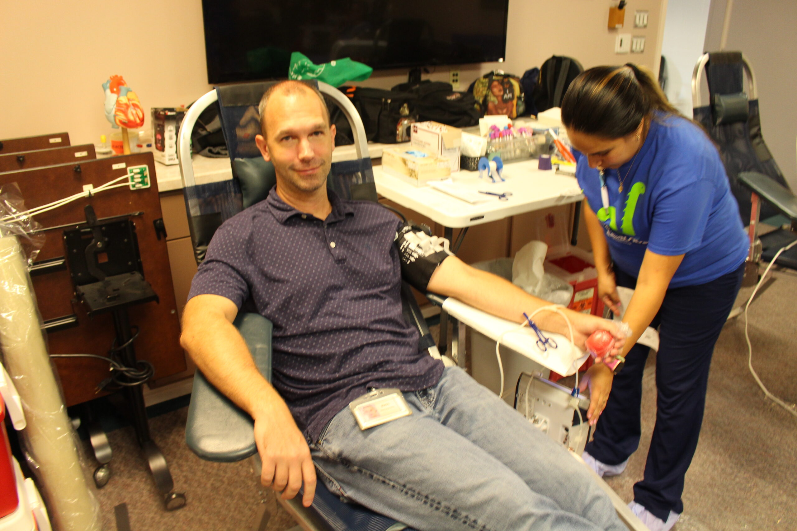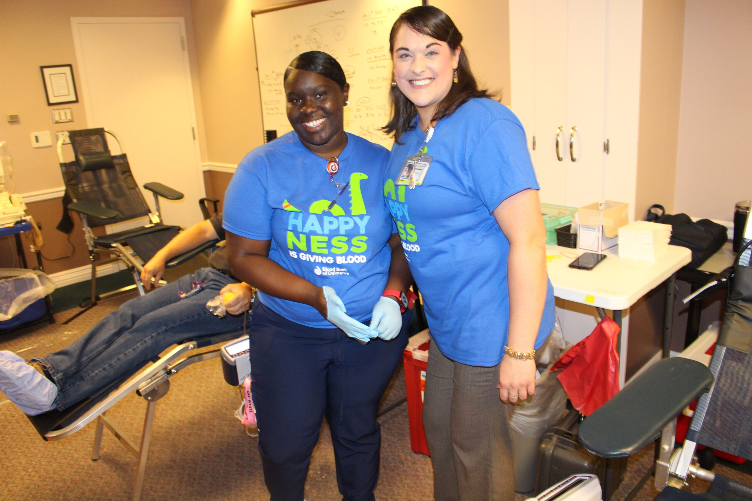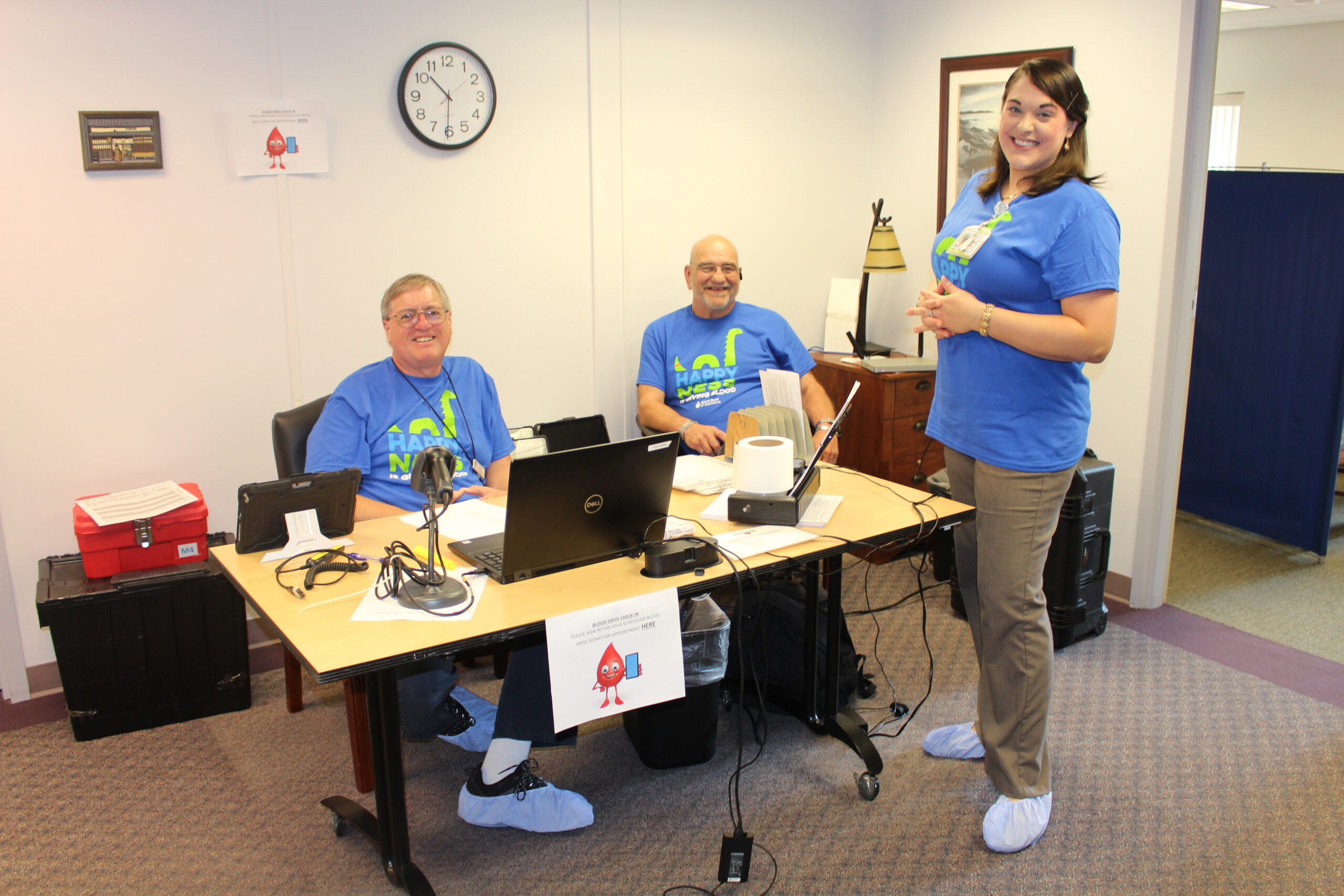 Several donors were also inspired by Terumo tech Jason Painter’s son, Maverick, to donate. Maverick needed eight transfusions after he was born September 3, 2018. In addition, all Terumo’s received this year’s official Maverick T-shirts, the Loch Ness monster styled “Happy Ness is donating blood.” That included Jason’s friends, Evan Carson and Noellle Thompson, among others.