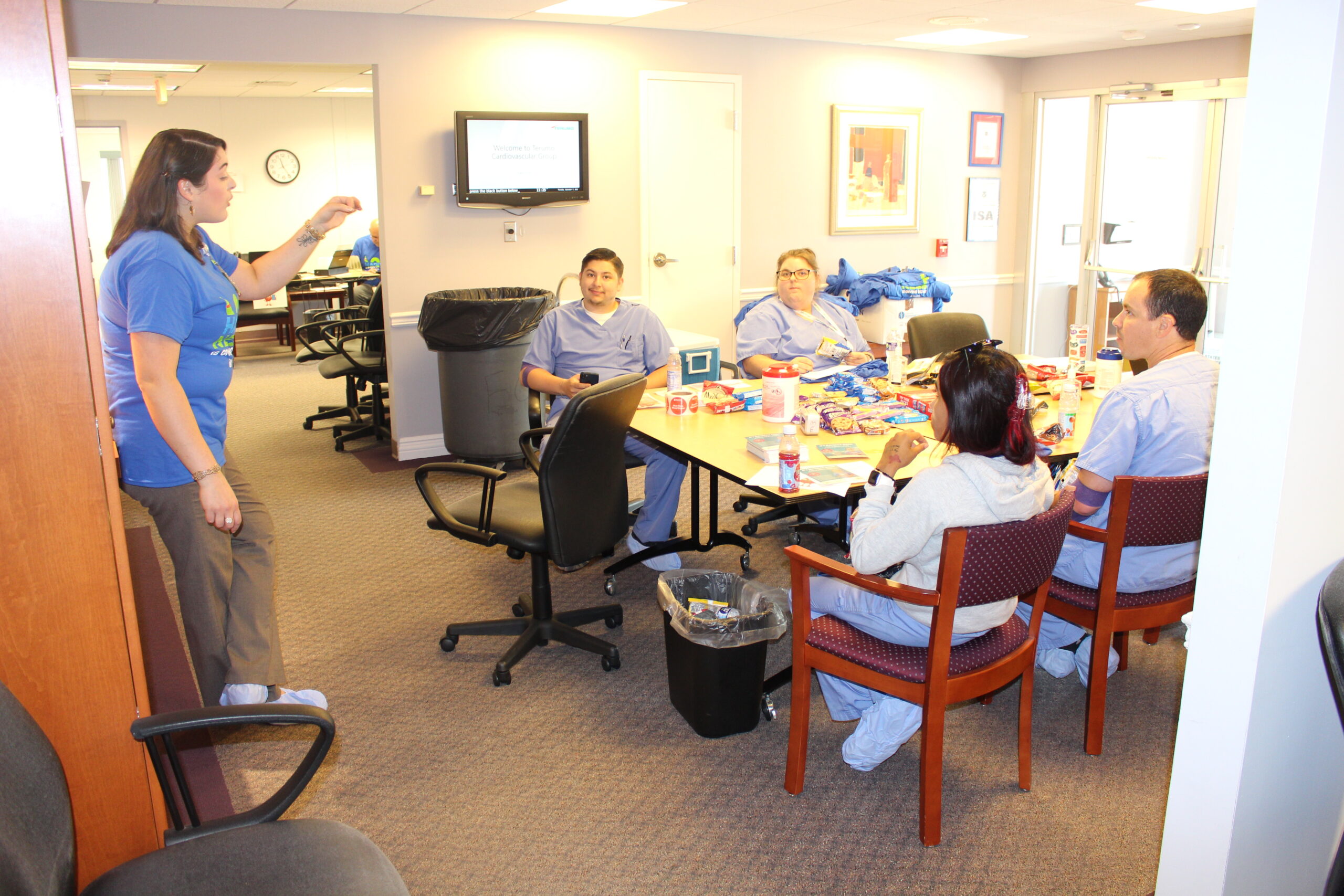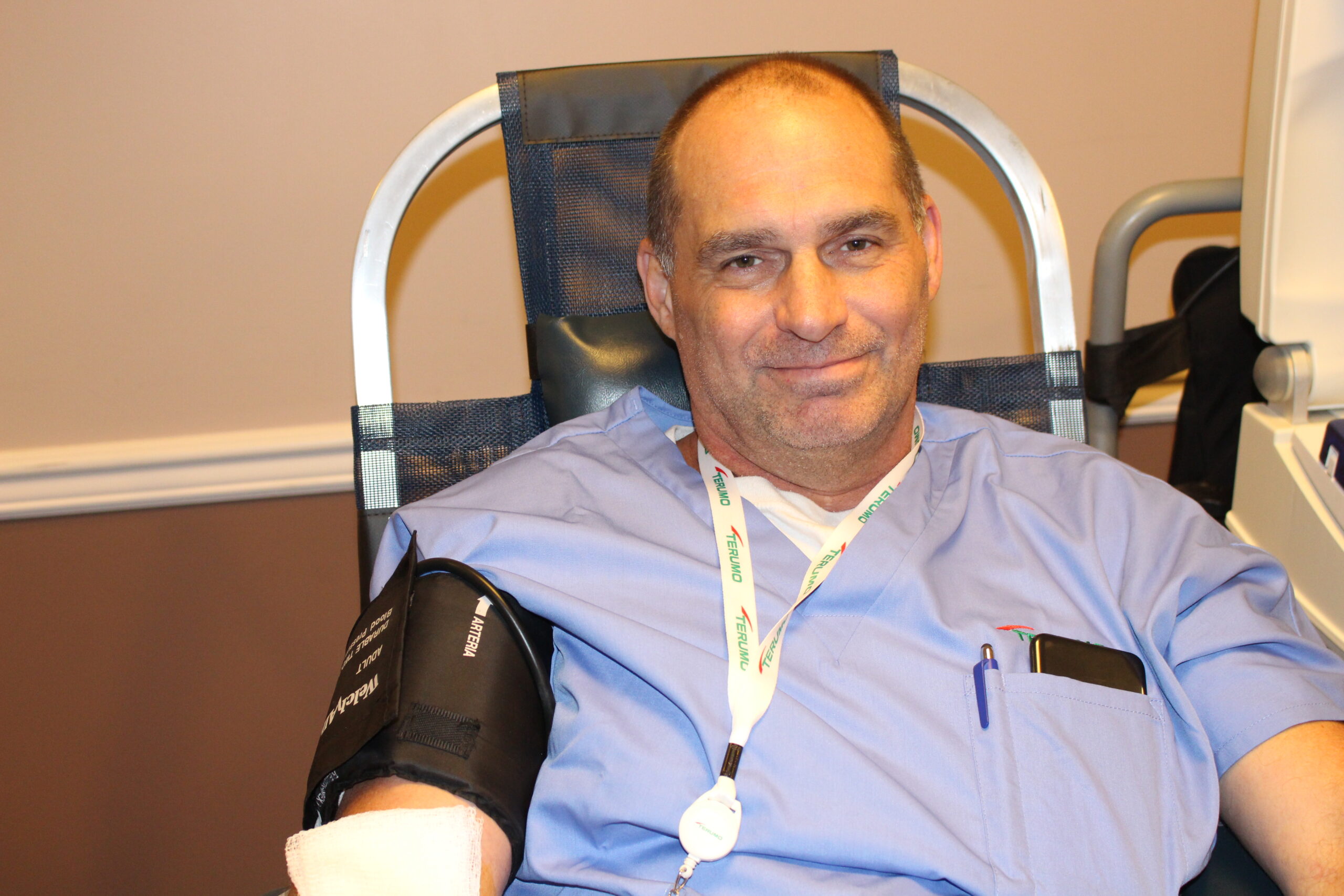 Terumo’s quarterly blood drive on Thursday was the autumn edition of the quarterly blood drive that Terumo Occupational Health Nurse Stephanie Eskridge brought back in the summer. Stephanie worked with BBD Account Manager Mary Moore, whose territory includes Cecil County, to have BBD return to Terumo after a hiatus of a few years.