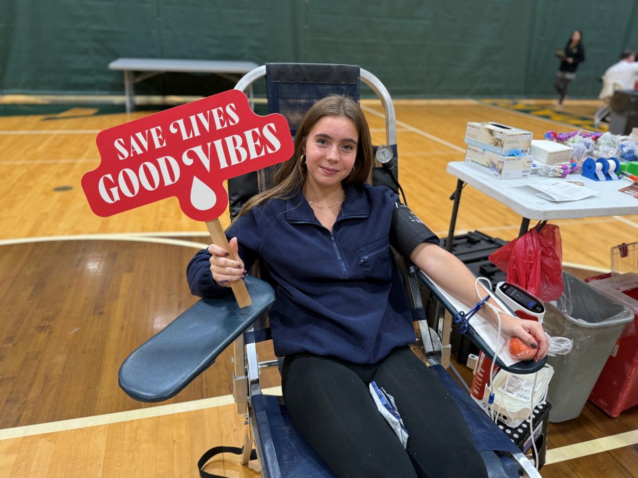 For Christina, this was her third time donating blood. “I like that it’s for a good cause. You get a cool T-shirt, and we get service hours,” Christina said. “So, why not?”