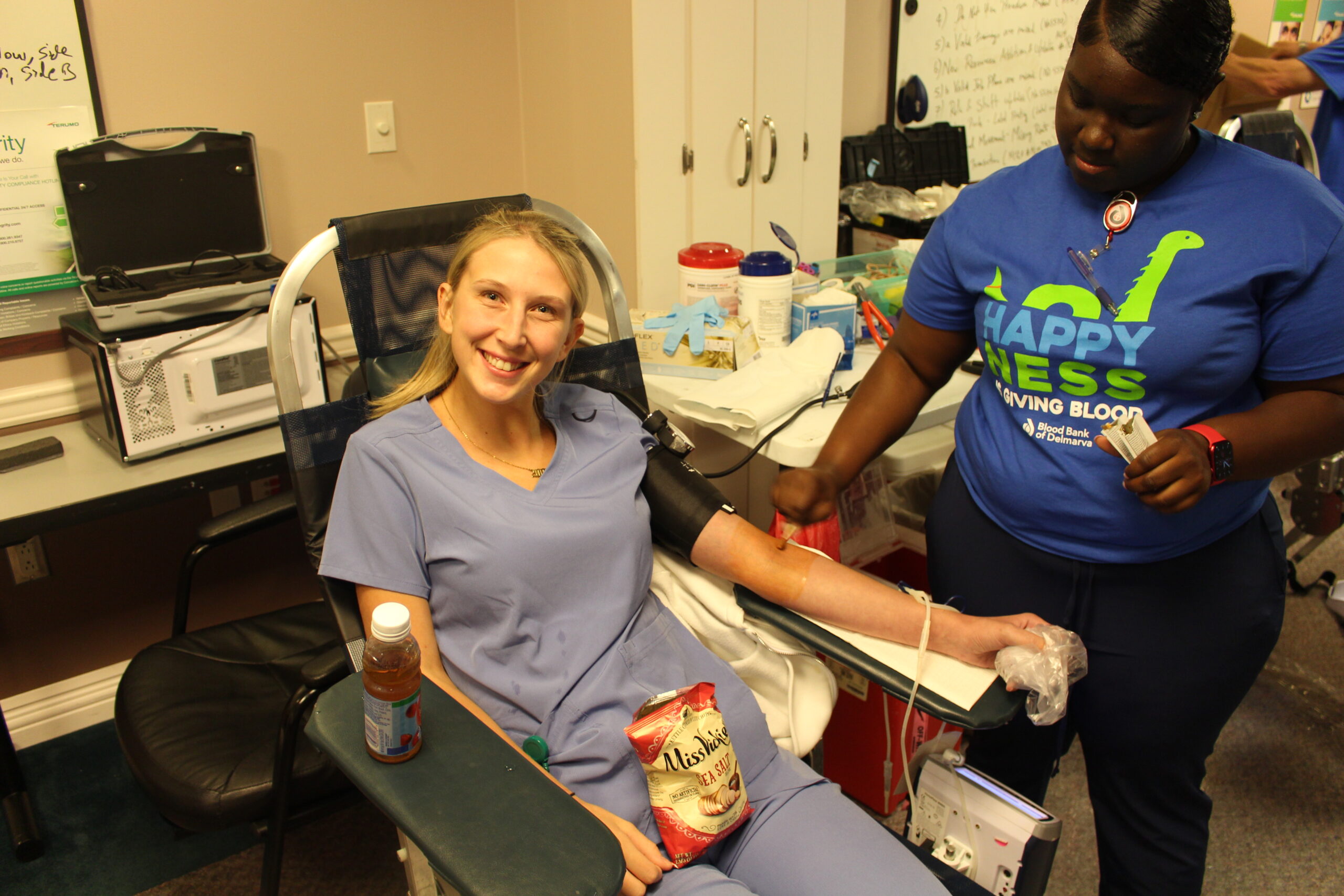 Terumo’s quarterly blood drive on Thursday was the autumn edition of the quarterly blood drive that Terumo Occupational Health Nurse Stephanie Eskridge brought back in the summer. Stephanie worked with BBD Account Manager Mary Moore, whose territory includes Cecil County, to have BBD return to Terumo after a hiatus of a few years.